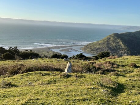 As shown, we also raise goats and sheep, here guarded by Bo, a faithful Great Pyrenees. The Lost Coast Ranch has been dedicated to sustainable and ethical livestock production since 1969. We raise grass-fed and finished Wagyu X Angus cattle on improved rangeland, providing them with a natural and healthy environment to graze.